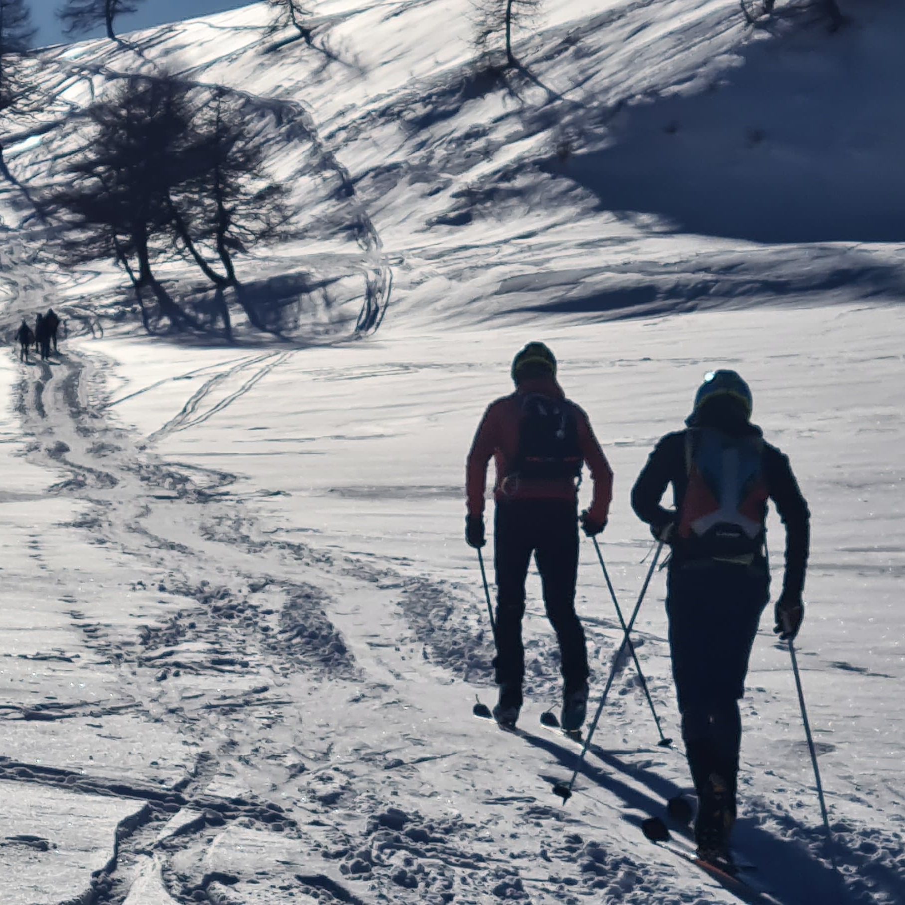 Quando la neve permette di scivolare, lo sci alpinismo diventa il mio principale allenamento. Una disciplina tanto complessa quanto affascinante. Non c’è tempo per percepire la monotonia della ripetizione nell’allenamento tanto sono le cose da imparare. Lo scivolamento è un bene per le articolazioni ed è la possibilità di costruire una grande base aerobica attraverso metri di dislivello positivo e ore in altitudine. L’Ubaye è un paradiso per questo: tracce infinite, di differente livello tecnico, per qualsiasi necessità di allenamento e un silenzio che ti entra dentro per tirarti fuori qualcosa. Mi alleno seguendo un planning ben definito, spesso sono avvolto nella mia bolla per ore ma contaminato da una natura profonda verso colli e vette, viste mozzafiato, senso di immensità che solo in montagna riesco a trovare.