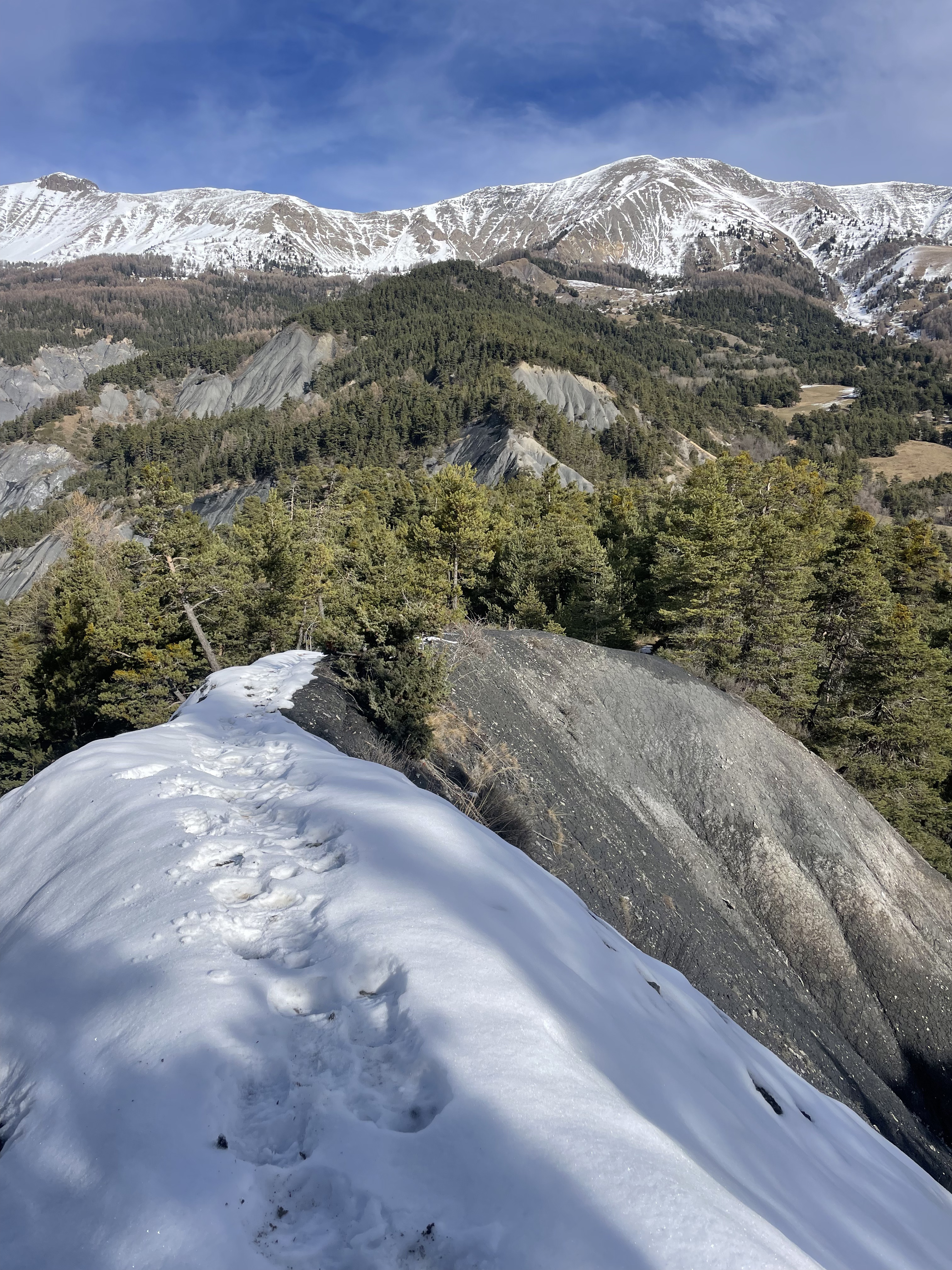 Mantenere l’abitudine agli impatti qui è possibile anche in inverno perché nelle piste forestali che circondano Barcelonnette il terreno è ondulato e favorisce corse per il mantenimento aerobico. Il terreno ti “skilla” perché a tratti è ghiacciato e di conseguenza devi tenere alta l’attenzione, leggerlo in anticipo e interpretarlo con il giusto appoggio per evitare di finire a terra. Lo trovo sfidante e divertente, spesso fa perdere la percezione della fatica talmente bisogna essere connessi al campo di gioco.